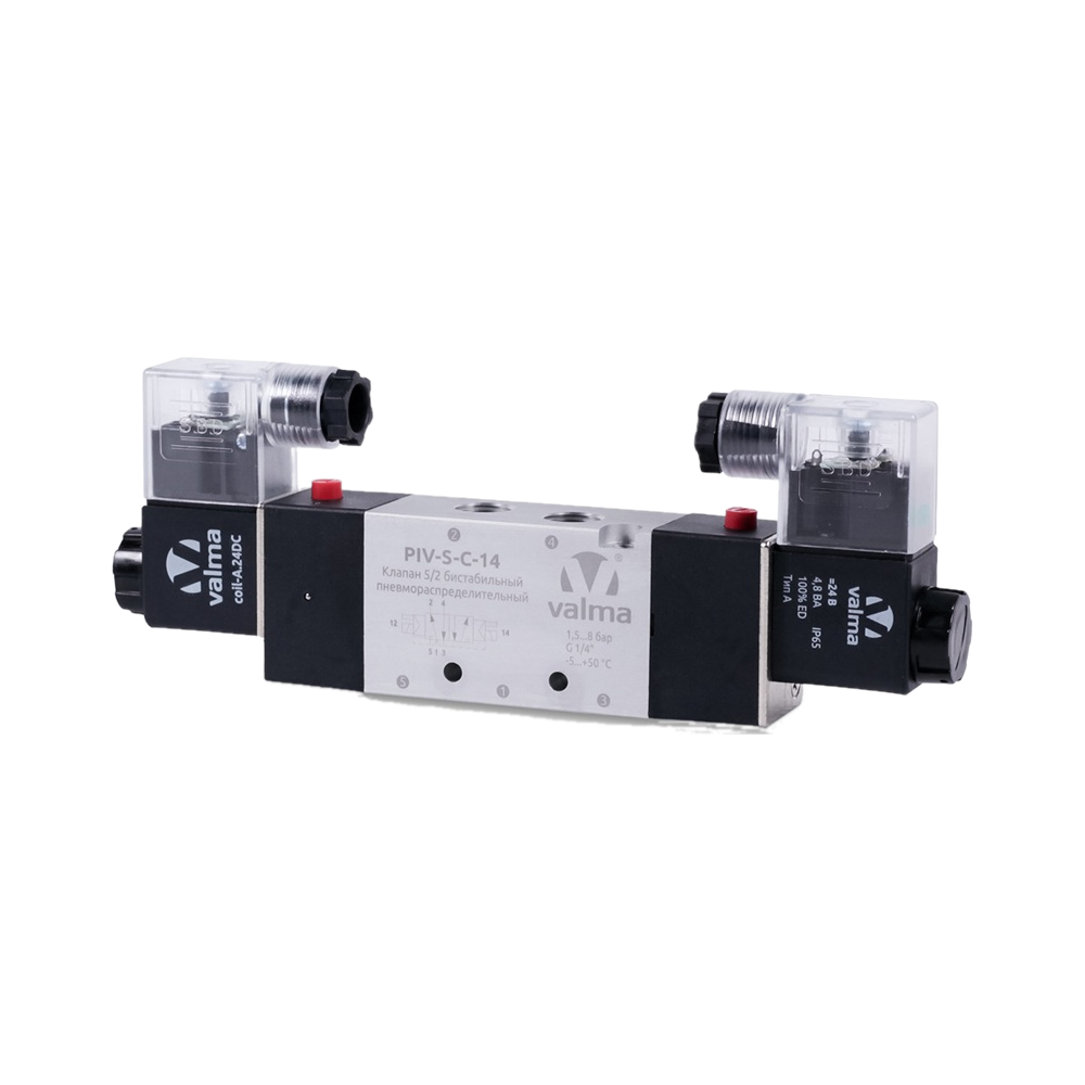 PIV-S-C-18.220AC Клапан пневмораспределительный 5/2 бистабильный, G 1/8''